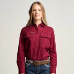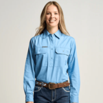 SOMERSET | Womens Half Button Long Sleeve Work Shirt - Sky Blue